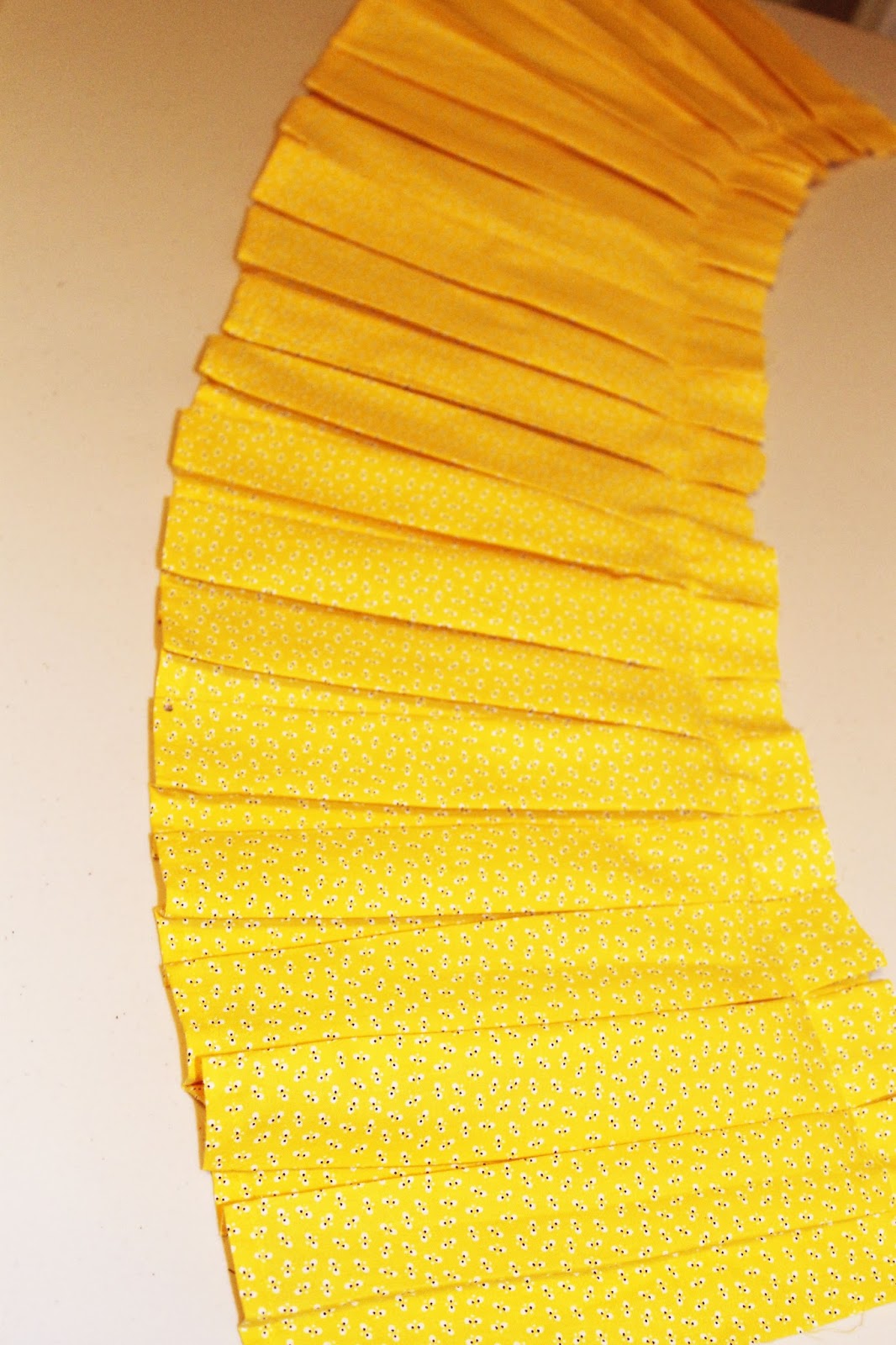 For the main fabric, measure the waist of your child and multiply it by 3. My daughter's waist is 20" so I cut my main fabric 60" long. To get the width, measure from the waist to just on the top of the knee. My main fabric ended up being 60"x10".